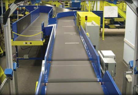 垂直分流器是用來(lái)將行李或包裹在兩個(gè)不在同一水平面的傳輸機(jī)之間無(wú)振動(dòng)、低噪聲平穩(wěn)的運(yùn)輸,是常用的行李分揀設(shè)備。