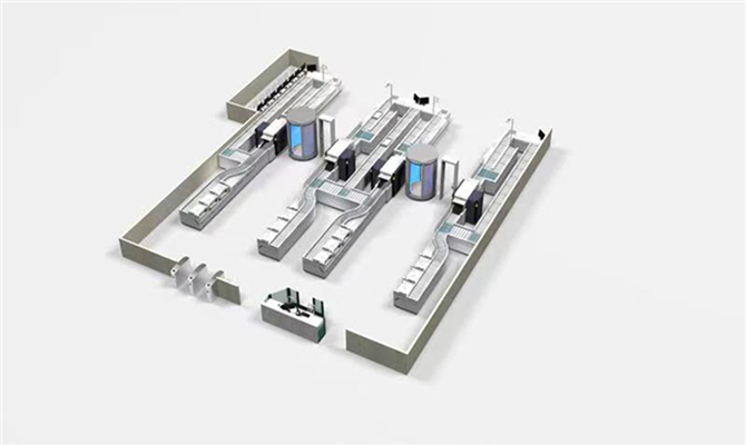 德利研發(fā)全新的旅客隨身行李系統(tǒng),推出全新的智能安檢方案,旨在將傳統(tǒng)的安檢系統(tǒng)升級(jí)為便捷、高效、舒適、美觀、安全性更高的一體化智能系統(tǒng),帶來(lái)全新的安檢體驗(yàn),減少安檢人員的體力勞動(dòng),使人員分工更加明確,安檢流程更加規(guī)范,安全性更高。單獨(dú)放包:旅檢系統(tǒng)為旅客提供了單獨(dú)的放包位,旅客在準(zhǔn)備安檢包裹時(shí)將避免擁擠干涉的環(huán)境,不再有”催促感。自動(dòng)供筐:引導(dǎo)員無(wú)需為待檢旅客提供空筐,節(jié)省工作人員勞動(dòng)強(qiáng)度,將更加專注于引導(dǎo)旅客關(guān)于鋰電池類物品的放置。自動(dòng)分揀:判圖員只需在計(jì)算機(jī)上操作,便可將可疑行李快速分揀到開(kāi)包臺(tái),無(wú)需工作人員口頭命令旅客開(kāi)包檢查。人包綁定:旅客航班信息、人臉信息與行李信息進(jìn)行唯一綁定,實(shí)現(xiàn)人包對(duì)應(yīng)”,為開(kāi)包檢查與后期查詢提供數(shù)據(jù)支持。空筐識(shí)別:系統(tǒng)對(duì)過(guò)檢的空筐進(jìn)行識(shí)別。非空筐等待,空筐則自動(dòng)回收,無(wú)需工作人員處理。自動(dòng)復(fù)檢:開(kāi)包檢查后的行李會(huì)自動(dòng)回傳至待檢輸送線上,自動(dòng)進(jìn)入安檢機(jī),無(wú)需工作人員往復(fù)走動(dòng)。旅客隨身行李處理系統(tǒng)(全功能版) -