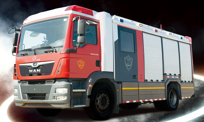 This truck is modified from the TGM18.290 second-class chassis produced by German Man Automotive Group. This truck is equipped with a 2+7 person passenger compartment and a rotating stepped pedal design; The equipment box and pump room are made of all-aluminum alloy plate structure, integrated and lightweight design, lap-type, no-welding production process, no stress concentrated deformation, and the vehicle has a long service life. The water tank adopts the built-in detachable type, and the water pump adopts the post-installation. The appearance is novel, the structure is compact, and the operation and maintenance are very convenient. It is a necessary fire fighting vehicle for petrochemical enterprises, oil terminal, oil depots, airports, full-time fire brigades in large and medium-sized cities and enterprises.Multi-purpose city main battle fire truck -