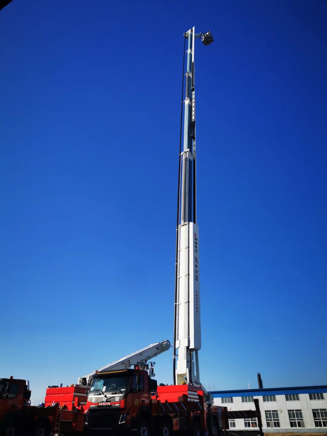 說到舉高車,很重要的一個衡量指標是 “穩(wěn)定性”。小時候爬過樹的朋友都知道,越往上爬,樹晃動也越大,舉高車也是如此。上述負責人介紹,目前市面上的一些消防舉高車采用的后折疊式臂架方案雖然也能舉到一定高度,但是運行過程中臂架晃動劇烈、動作平穩(wěn)性較差,導(dǎo)致很難穩(wěn)定地對準目標樓層,也很難安全地接送消防員和被困人員。按照國際標準,舉高車舉升之后,頂部平臺的水平和垂直晃動不能超過50cm。但是有些品牌的舉高消防車舉升之后頂部晃動甚至達到1米以上,舉得再高作用可能也有限。