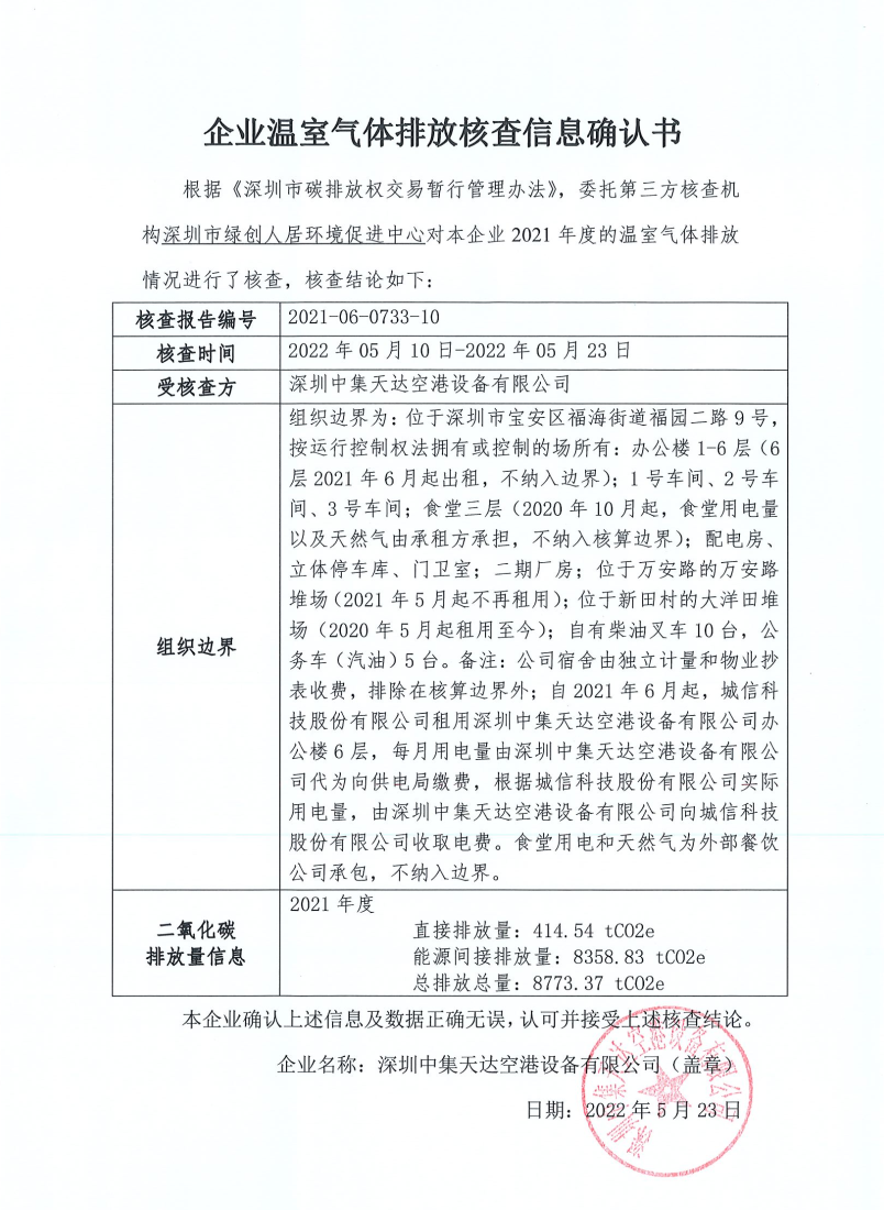 關(guān)于中集天達(dá)2021年度碳核查結(jié)果的公布