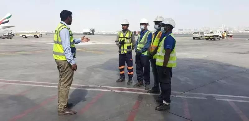 圖片內(nèi)容:中集天達(dá)服務(wù)維保團(tuán)隊(duì)在疫情期間堅(jiān)守迪拜機(jī)場崗位,獲得迪拜機(jī)場副總裁的表揚(yáng)和贊賞。