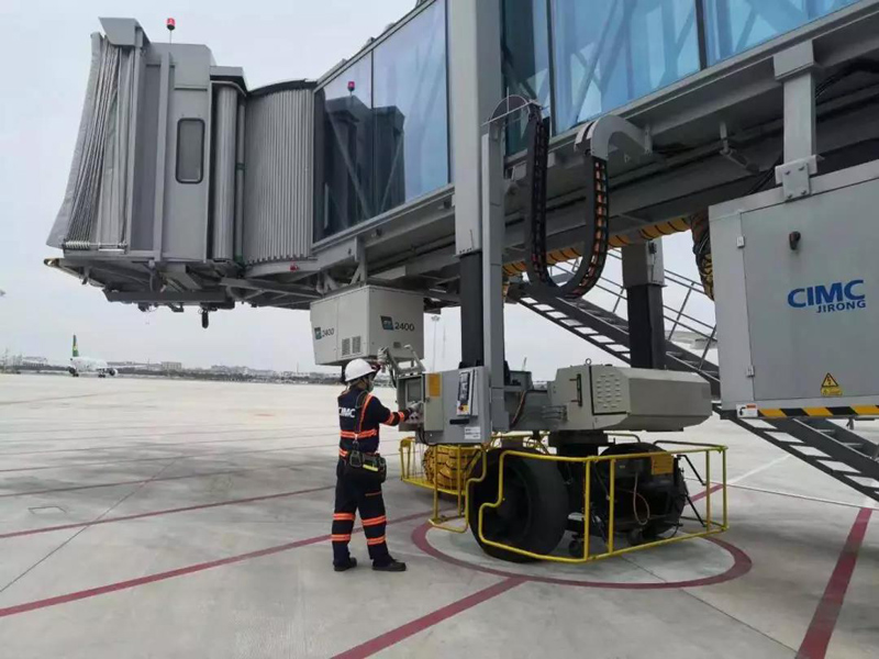 圖片內(nèi)容:在給登機(jī)橋遮篷上潤滑油