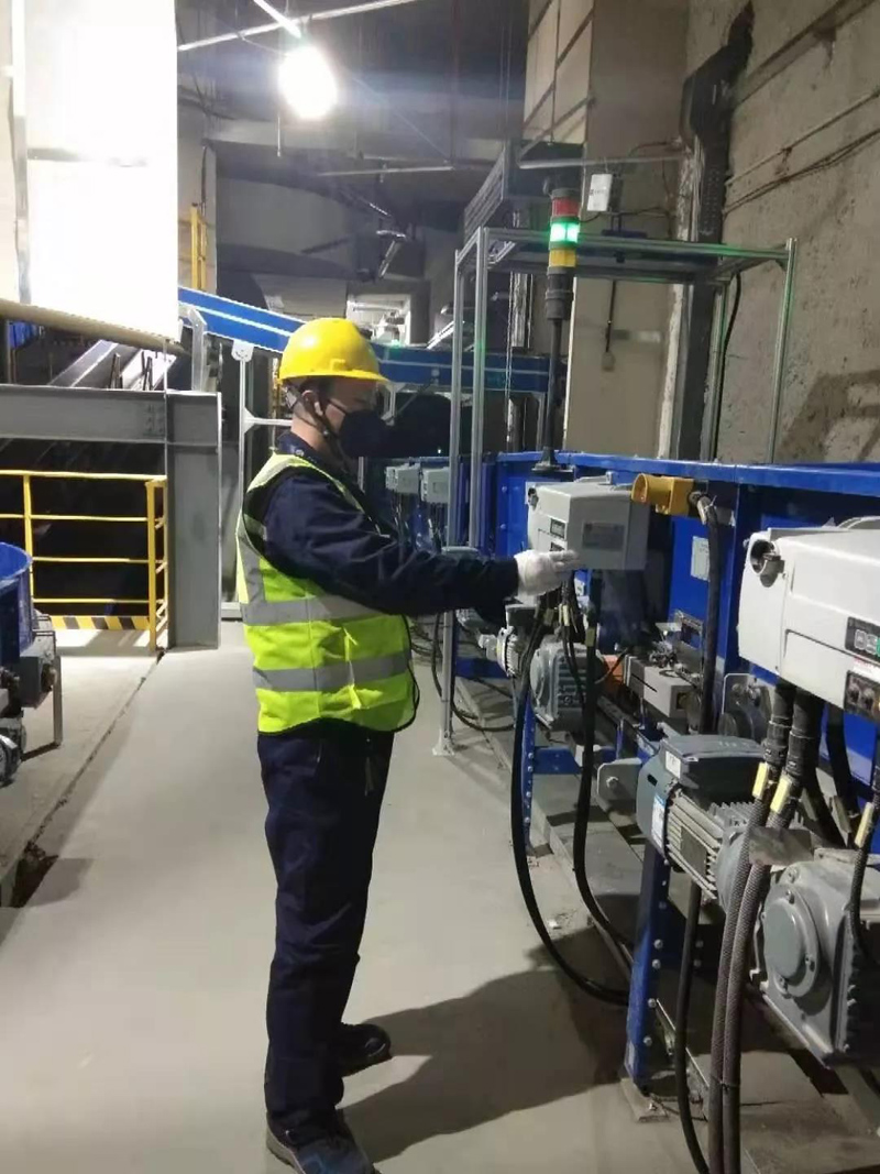 圖片內(nèi)容:上海浦東機(jī)場西區(qū)貨站王勇、李潘搶修現(xiàn)場設(shè)備輥道臺(tái)、ETV