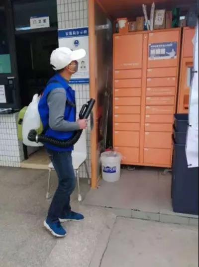 圖片內(nèi)容:門衛(wèi)處消毒